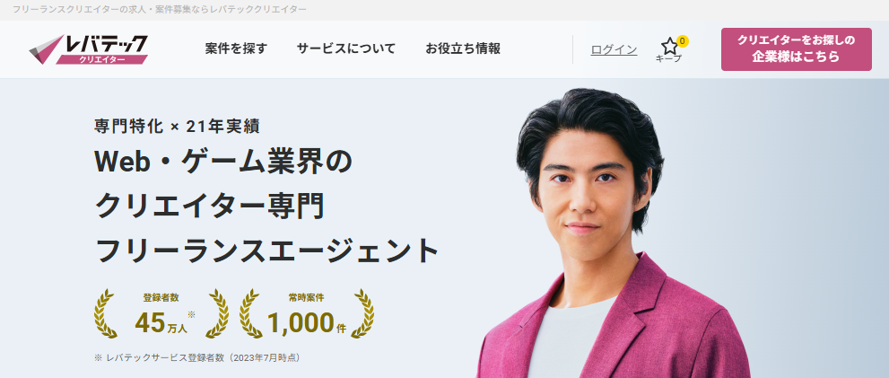 レバテッククリエイターは、Web・ゲーム業界のクリエイター専門フリーランスエージェントです。