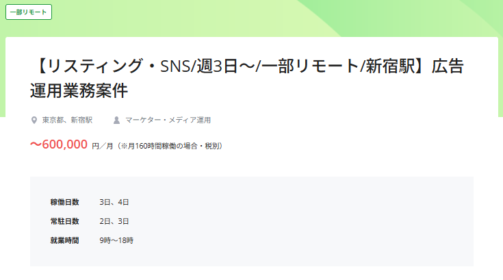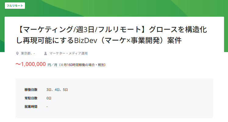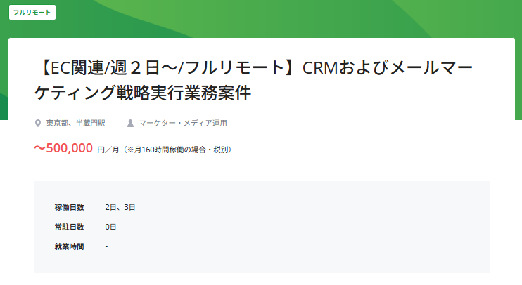 フリーランスのマーケター向けに、週2〜3日稼働の案件は一定あります。