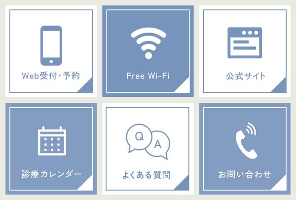 お問い合わせのアイコンは短い診察時間(おそらく午前、午後の3時間ずつ)、特に花粉症の繁忙期はLINEやメールのやりとりより直接お電話の方が速いと思いましたので受話器にしました。メールのアイコンに変更もできます。