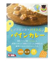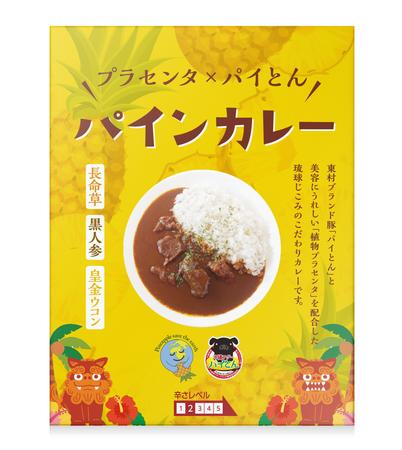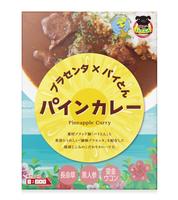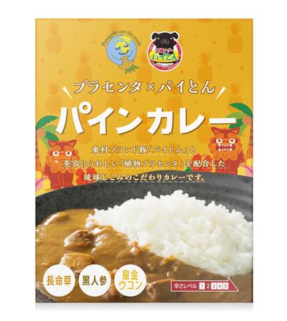 全面にパインのイラストを使用しカレーとの組み合わせのインパクトを