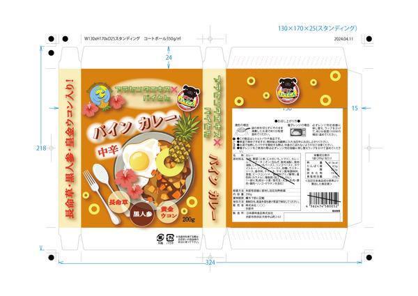 初めまして。フジ〜と申します。沖縄のパインカレーということで、少し難しい題材でしたが、イラストでパインが入って健康的なイメージで製作しました。採用の際は修正可能ですので、ご連絡宜くお願い致します。