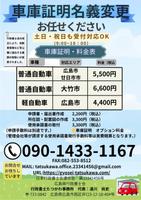 ウェブ屋*行政書士 保田様 お世話になります。 sachi.creationの金城と申します。 2案目をご提案させていただきます。 文字サイズを調整し、より車庫証明の登録・変更の情報が目立つようにしております。 土日・祝日対応も強みとなるかと思いますので、人物のイラストを入れて、 情報がわかりやすいようにデザインいたしました。 修正等ございましたら、お気軽にお申し付けください。 ご検討のほどよろしくお願いいたします。