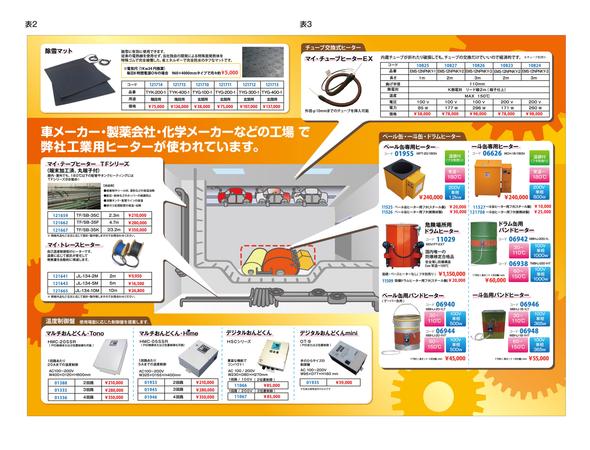 お世話になります。 ご提案させていただきます。 表紙と裏表紙です。 ヒーターがメインの商品ということで、オレンジベースに、工場のイメージでギアなどを あしらいました。 商品知識があまりないので、もし間違っている箇所などございましたら修正させていただきます。 よろしくお願いいたします。