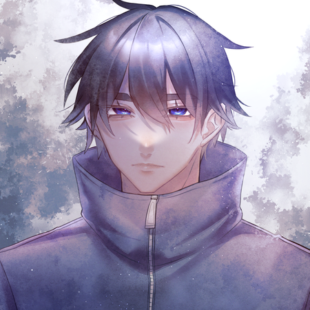 指定された条件を取り入れつつ、青と青紫をメインにイラストを描きました。